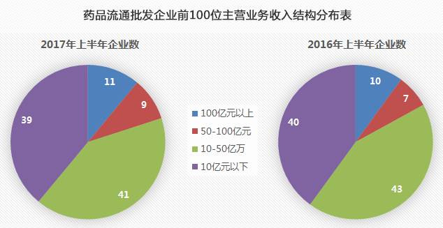 隨著實體和渠道并購不斷增強,藥品批發企業入圍全國前100強的“門檻”,從2016年上半年的5.9億元(主營業務收入),上升到今年上半年的6.1億元。預計2017年下半年,這個“門檻”將進一步提高。