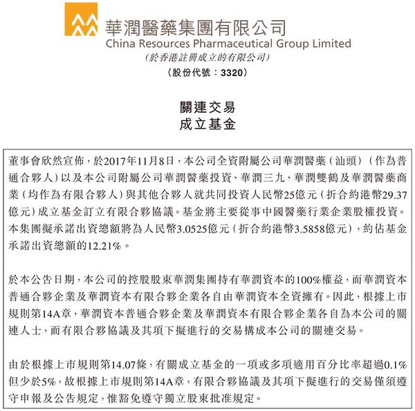 就在上海醫藥積極與康德樂洽談收購細節時,今年11月,華潤醫藥發布公告稱,與漢威華酉、漢威華德、華潤三九和華潤雙鶴,共同投資人民幣25億元成立基金,計劃用于未來的渠道投資,重點擴張藥品流通領域業務。